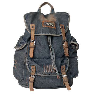 Túi sinh viên retro vải rửa denim ba lô nam túi đại học gió giải trí công suất lớn túi du lịch thủy triều - Ba lô balo local brand đi học Ba lô