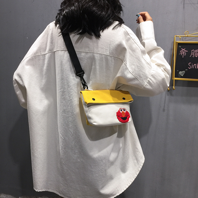 Túi vải mới túi nhỏ nữ 2019 mới sinh viên Sesame Street va chạm màu túi đeo vai xiên lưới vải đỏ - Túi xách nữ túi xách nữ channel