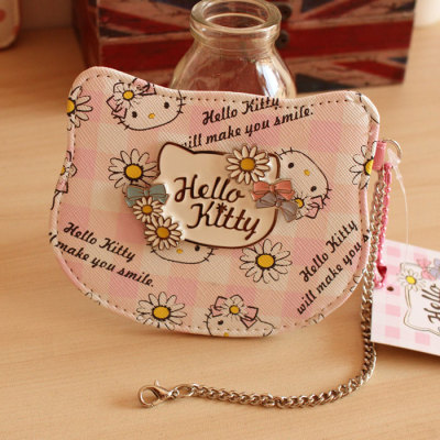 Tươi và đáng yêu hello kitty chữ màu hồng kẻ sọc daisy ngắn ba chiều phụ nữ giao thông thẻ gói thẻ bộ shop ban day deo the