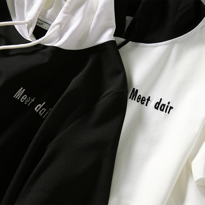 の [TX193008MG] cười Hange thời trang giản dị màu đen và trắng phù hợp với phiên bản lỏng ngắn tay trùm đầu T-Shirt áo phông nữ dài tay