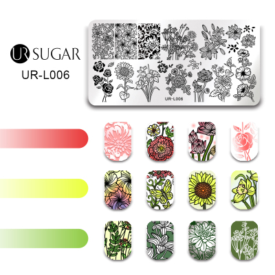 UR SUGAR móng tay hình chữ nhật in tấm dầu mẫu thép tấm chuyển sơn móng tay công cụ keo bộ làm nail Công cụ Nail