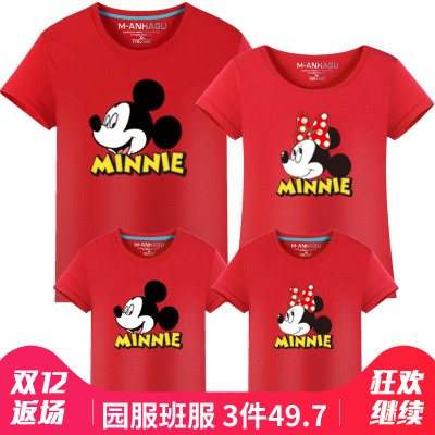 Ưu đãi đặc biệt cho phụ huynh-trẻ em mặc mùa hè đỏ hoạt hình Mickey cotton Áo phông ngắn tay gia đình ba lớp mẫu giáo phục vụ tùy chỉnh đồng phục gia đình cao cấp Trang phục dành cho cha mẹ và con