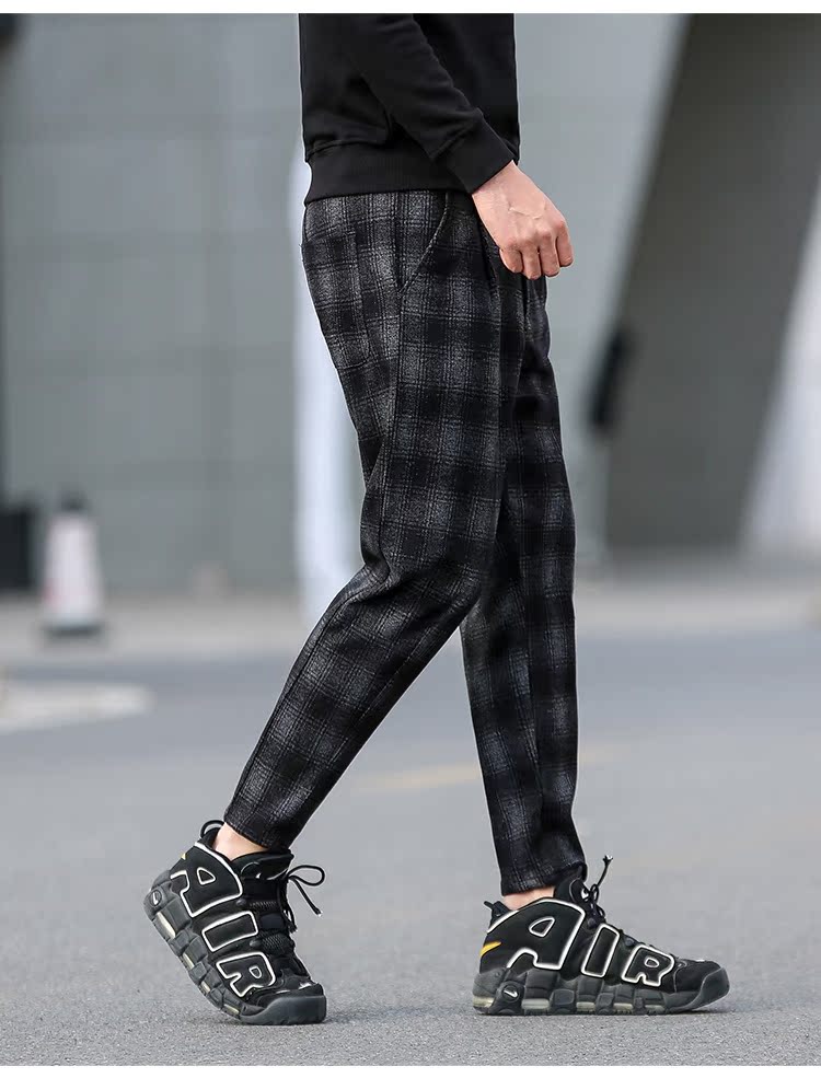 Vải huyền thoại mùa thu và mùa đông kẻ sọc quần âu nam dày chín quần phiên bản Hàn Quốc của đôi chân nhỏ quần Harlan nam quần áo nam