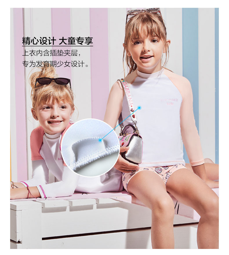 Van Dean new girl đồ bơi dài tay chẻ vừa trai lớn cổ cao kem chống nắng màu trắng tương phản khâu màu áo tắm - Bộ đồ bơi của Kid đồ bơi trẻ em cao cấp Bộ đồ bơi của Kid