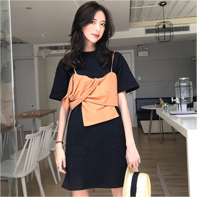 Váy 2019 mới mùa hè lưới đỏ của người đàn ông nhỏ bé hoang dã đã mỏng một chiếc váy chữ áo thun váy bình thường - A-Line Váy váy liền thân chữ a đẹp A-Line Váy