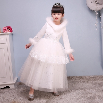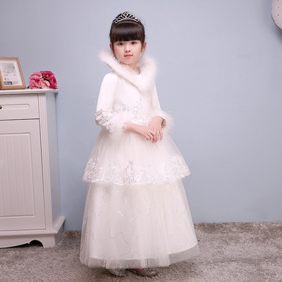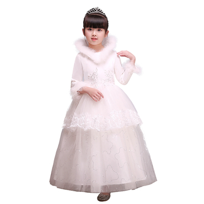 Váy bé gái công chúa váy mùa thu và mùa đông cô gái váy cưới cộng với nhung ấm váy dài hoa cô gái piano trang phục dài tay nữ váy biểu diễn cho trẻ em