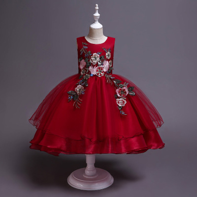 Váy bé gái mặc váy công chúa mùa hè 2019 Váy bé gái màu đỏ váy sinh nhật satin - Váy trẻ em váy dự tiệc trẻ em cao cấp Váy trẻ em