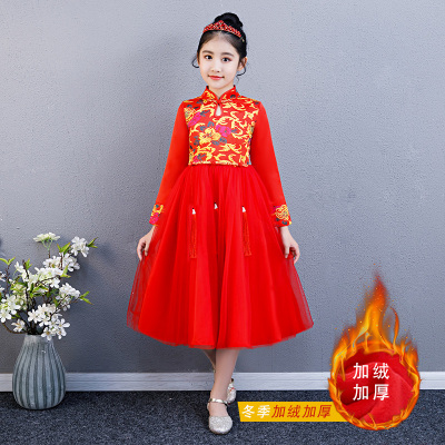 Váy bé gái váy công chúa mùa đông cộng với váy nhung dày năm mới kiểu váy sườn xám Trung Quốc đầm đẹp cho be gái 7 tuổi