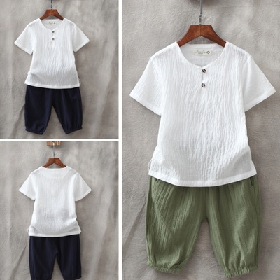 Váy bé trai mùa hè 2019 mới cotton và vải lanh phù hợp với quần áo trẻ em mùa hè trẻ em mùa hè tay áo ngắn hai mảnh - Khác quần áo cho trẻ 14 tuổi nam Khác
