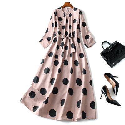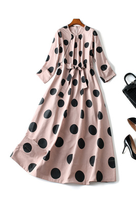 Váy chấm bi đầu thu mới 2019 cho vợ rộng rãi khí chất nhỏ một lời với váy plycodon nữ - A-Line Váy mẫu váy chữ a cho người béo