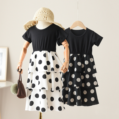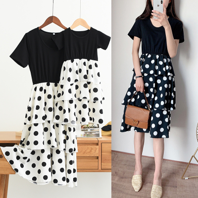 Váy chấm bi như mẹ, người mẫu cha-con, váy ngắn tay, váy nữ, phần mỏng của con gái, váy mùa hè. - Trang phục dành cho cha mẹ và con áo váy gia đình Trang phục dành cho cha mẹ và con