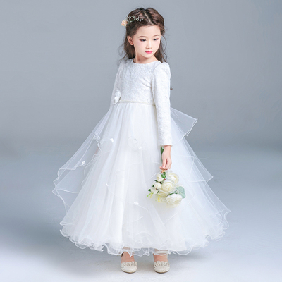 Váy công chúa cô gái dài tay hoa cưới cô gái pettiskirt piano tổ chức trang phục mùa xuân và mùa thu trẻ em váy dài shop thời trang trẻ em