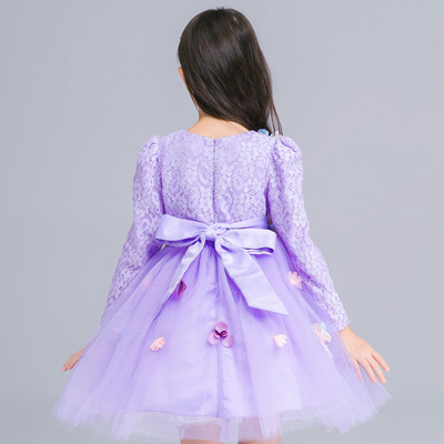 Váy công chúa dài tay mùa xuân và mùa thu mẫu cô gái váy dài váy hoa cô gái váy trẻ em váy cưới trang phục piano hợp xướng đồ cô dâu chú rể trẻ em Váy trẻ em