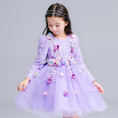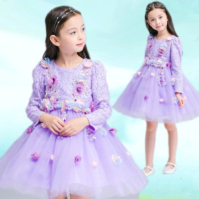 Váy công chúa dài tay mùa xuân và mùa thu mẫu cô gái váy dài váy hoa cô gái váy trẻ em váy cưới trang phục piano hợp xướng đồ cô dâu chú rể trẻ em