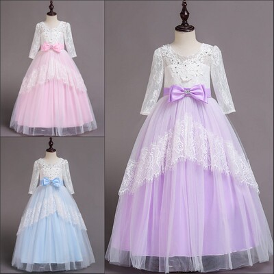 Váy cưới trẻ em châu Âu và ren ren trong tay áo váy sau lưng váy rỗng cô gái trang phục váy dài bộ vest bé trai đi tiệc