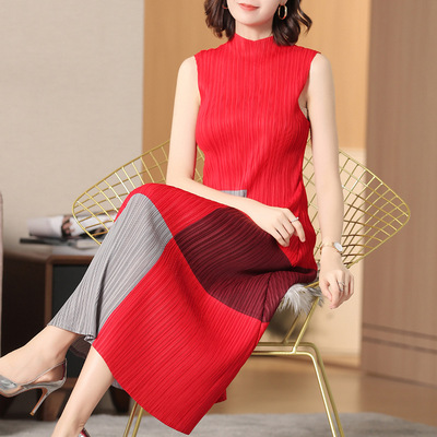 Váy em gái béo hè 2019 khí chất của phụ nữ mới là phần dài của đại dương che bụng nếp gấp lưới Một chiếc váy chữ - A-Line Váy thời trang nữ