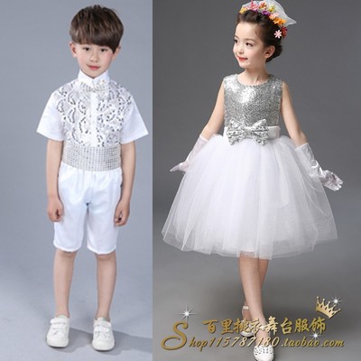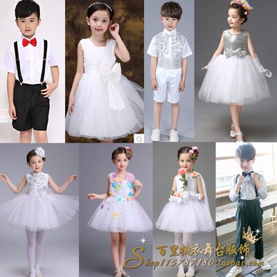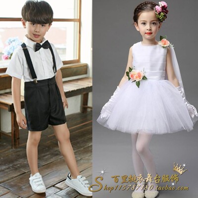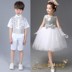 Váy hoa cô gái trẻ em đám cưới cô gái công chúa váy fluffy sợi trẻ em váy cưới màu trắng chủ trang phục set bộ vest bé trai kèm cavat