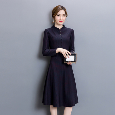Váy lụa nữ 2019 thu mới cổ tích khí chất dài phần eo cao Một chiếc váy chữ 9575 - A-Line Váy váy kẻ caro dáng chữ a