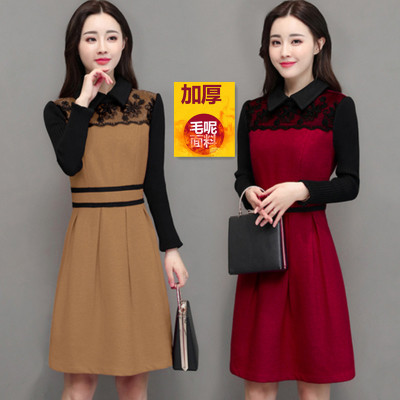 Váy mẹ trẻ 2018 mới thu đông eo eo thon dài tay búp bê chạm đáy váy chữ 35-45 tuổi đầm caro chữ a