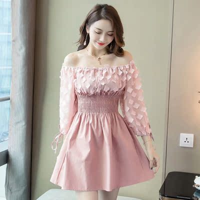 Váy ngủ nữ vai một mảnh 2018 mùa thu mới gió ngọt Nhật Bản khâu màu tương phản Một chiếc váy siêu cổ tích - A-Line Váy mẫu đầm xòe