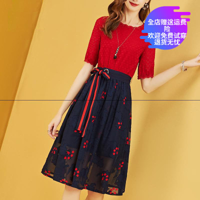 Váy nữ 2019 phổ biến khí chất lưới hoa đầm eo cao khâu Một chữ váy dài mùa hè phong cách mới - A-Line Váy đầm xòe tuổi trung niên A-Line Váy