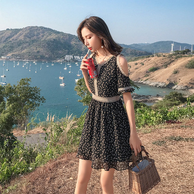 Váy voan hoa hè 2019 phiên bản mới của Hàn Quốc lưới đỏ nữ một thế hệ ngắn tay quây một chiếc váy chữ - A-Line Váy mẫu đầm xòe dài qua gối A-Line Váy
