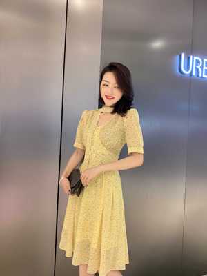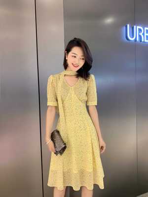 Váy voan hoa retro của phụ nữ châu Âu và Mỹ 2019 hè mới V-cổ eo hem Váy chữ A chấm bi - A-Line Váy váy xòe ngắn liền thân