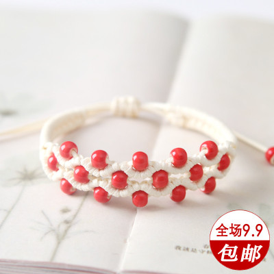 Vẻ đẹp sứ nguyên bản màu men sứ tráng men hạt vòng tay dệt vòng tay Trang sức đôi nhỏ tươi văn học dân gian thạch anh tóc xanh