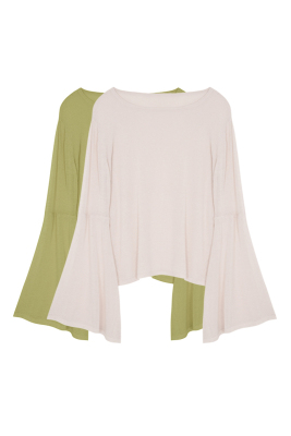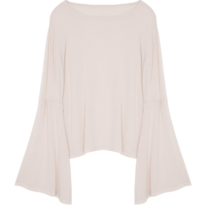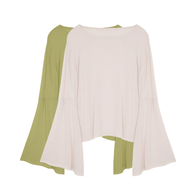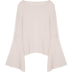 VEGA CHANG Dệt Kim Nữ Dài Tay Áo 2018 Sớm Mùa Thu Mới Vòng Cổ Trumpet Tay Áo Hollow Thin Loose Top quần áo nữ