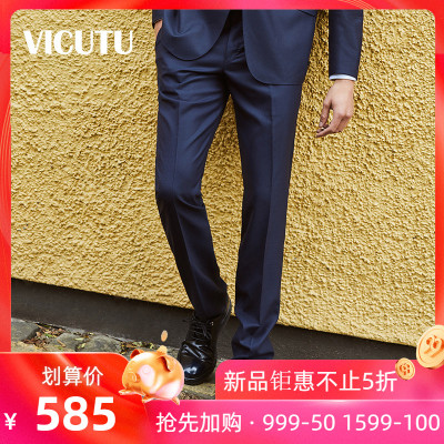 VICUTU Wicko Quần nam kinh doanh Thời trang Blue Wool Blend Slim Fit Quần nam - Suit phù hợp áo vest nam hàn quốc