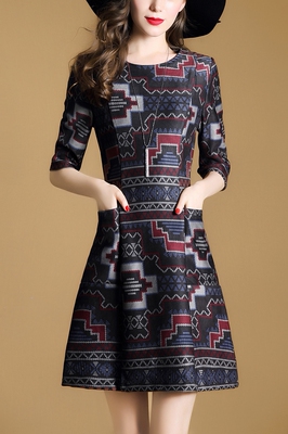 Vipshop sẽ bán phụ nữ của mùa thu năm 2018 mới truy cập đầm in túi bảy điểm tay áo Slim A-line váy váy chữ a công sở