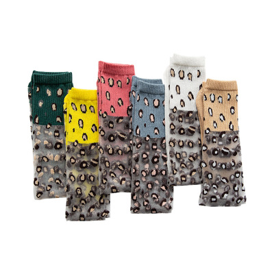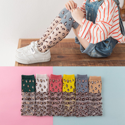 Vớ lụa thủy tinh trẻ em mỏng mảnh mùa hè băng lụa pha lê họa tiết da báo trên đầu gối thoáng khí cô gái chân dài thủy triều Hàn Quốc - Vớ tất chống trơn