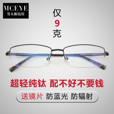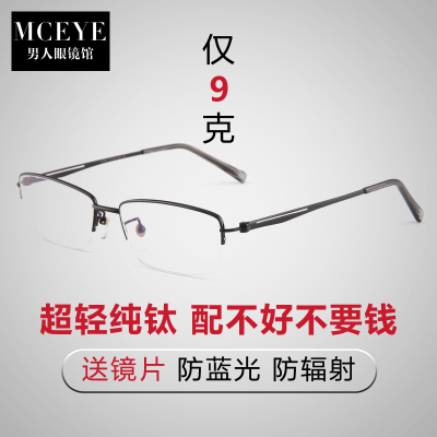 Với kính cận thị nam nửa khung kính titan nguyên chất khung kinh doanh khung đen khung mắt khung nam siêu nhẹ kính khung nam kính mát nữ