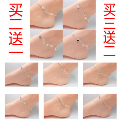 Vòng chân bạc 925 sterling nữ phiên bản tiếng Hàn của chuông đôi hộp trang sức bạc dễ thương hoang dã tươi retro đơn giản vòng đeo chân nữ bằng vàng