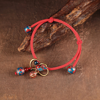 Vòng chân gió retro dây đỏ cloisonne chuông gió quốc gia gợi cảm chuỗi chân trang sức dài 2018 mới nữ lắc chân vàng pnj Vòng chân