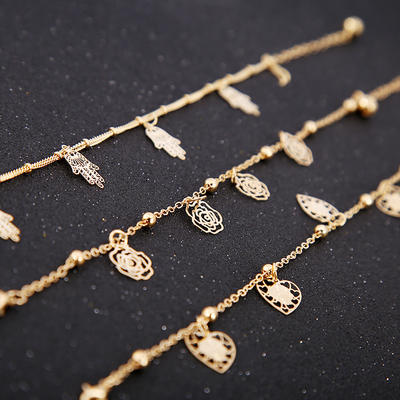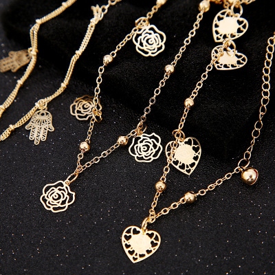 Vòng chân nữ Nhật Bản và Hàn Quốc tình yêu đơn giản Sinh viên Hàn Quốc cá tính thời trang retro cặp đôi trang sức chân tươi lắc chân nữ vàng đẹp Vòng chân