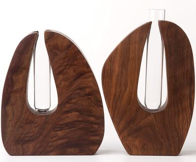 Wal 花 器 组 [工坊] Đen Walnut lọ hoa sáng tạo gỗ hoa đứng nghệ thuật bình thủy tinh bình gốm cắm hoa đào Vase / Bồn hoa & Kệ