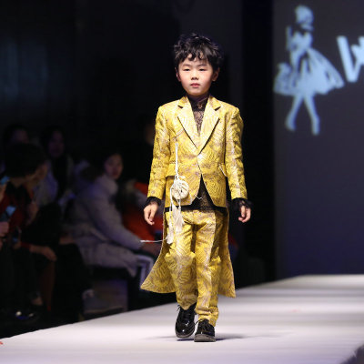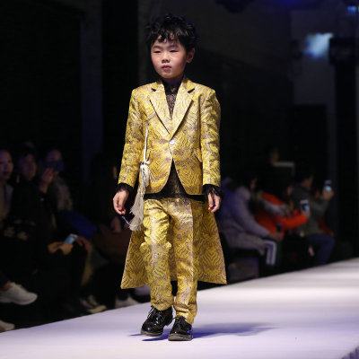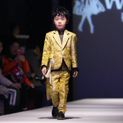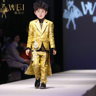Wei thiết kế hội nghị phong cách Trung Quốc mẫu váy mới catwalk T Đài Loan chàng trai thủy triều quốc phục Trung Quốc phong cách màu xanh - Váy trẻ em váy trẻ em đẹp
