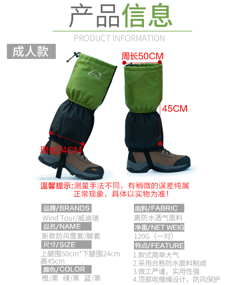 Weidui ngoài trời không thấm nước tuyết bộ sa mạc cát giày đặt xà cạp ấm chống rắn chân bìa leo núi xà cạp ủng phượt cao cấp Gaiters / merrell