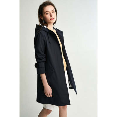 [WFY01005] Jasmine ya công nghệ mới composite vải lót sọc trùm đầu lão hóa dài trench coat áo phao nữ Trench Coat