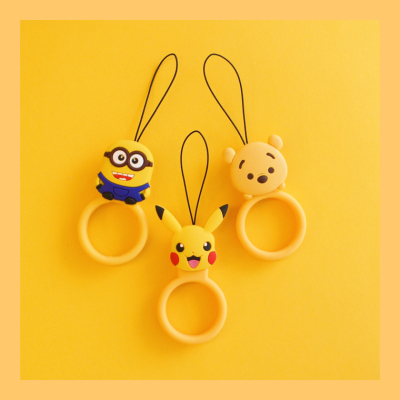 Winnie the Pooh hoạt hình silicone vòng nhỏ treo mặt dây điện thoại di động phổ quát chống rơi dễ thương nữ trang sức táo Pikachu - Nhẫn nhẫn cưới Nhẫn