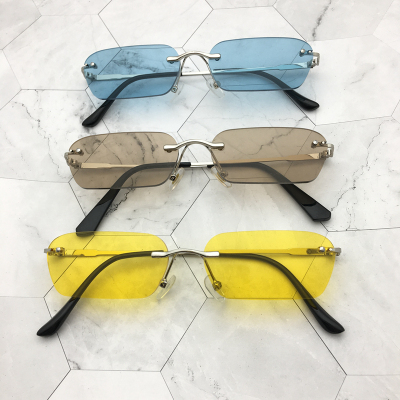Wu Yifan với kính râm nam hipster kính râm nữ port gió nam cá tính màu vàng vuông không khung kính đêm mắt kính râm nam