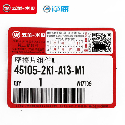 Wuyang Honda xe điện net gốc V2 V2l phiên bản thông minh phanh đĩa phía trước phanh đĩa phanh gốc xác thực má phanh xe máy air blade Pad phanh