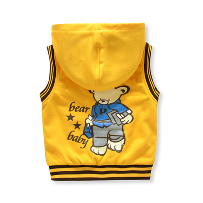 Xác thực gấu hoang dã mùa xuân và mùa thu trẻ em giản dị đôi áo trùm đầu bé trai áo khoác ba lỗ có mũ bé trai Áo ghi lê