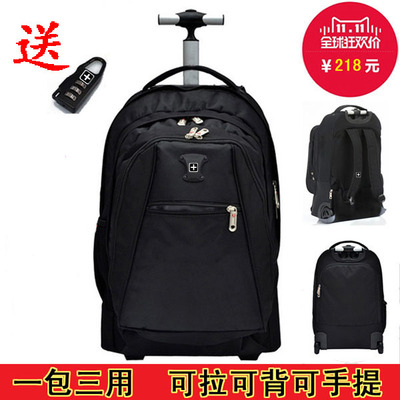 Xe đẩy ba lô túi du lịch có bánh xe máy tính ba lô nam nữ kinh doanh hành lý Thụy Sĩ công suất lớn vali kéo nhựa