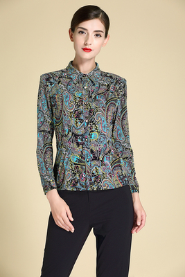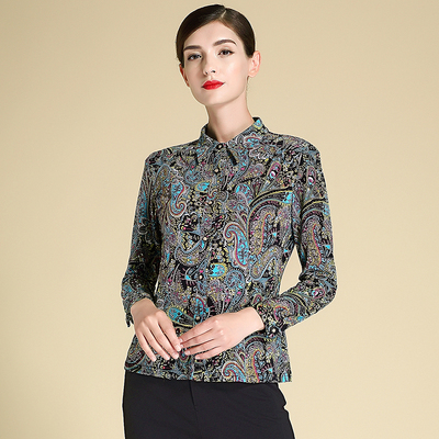 Xiang Mulan mẹ mùa xuân áo sơ mi trung niên của phụ nữ đáy áo phụ nữ trung niên của thời trang in dài tay áo sơ mi đầm cho người trung niên