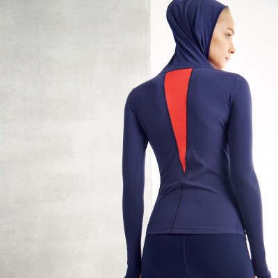 Xiaoxi home gymna gốc retro hit màu khâu chặt áo trùm đầu dài tay áo len co giãn thoáng khí nhanh khô là mỏng - Thể thao lông cừu / jumper áo hoodie zip Thể thao lông cừu / jumper