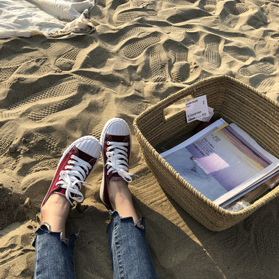 Xu Liumang Phiên bản tiếng Hàn của ulzzang nữ mùa hè sang trọng retro port gió in giày vải sinh viên Giày trắng hoang dã giày alphabounce nữ Plimsolls