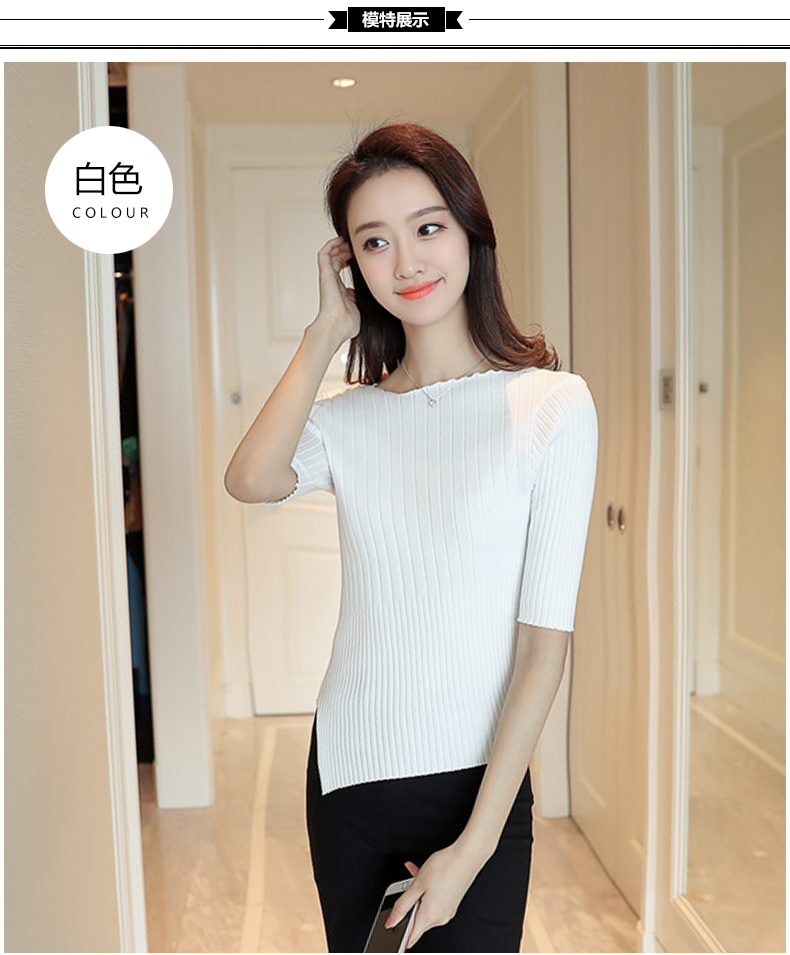 Xuân 2018 áo len mới bất đối xứng của phụ nữ thời trang Hàn Quốc màu rắn năm điểm tay áo dài đan áo sơ mi cổ trụ nữ Mùa xuân