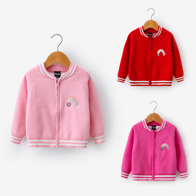 Xuân-Hè 2019 bé gái mới thêu áo len cầu vồng áo sơ mi dài tay áo cardigan áo khoác bé trai 10 tuổi Áo khoác